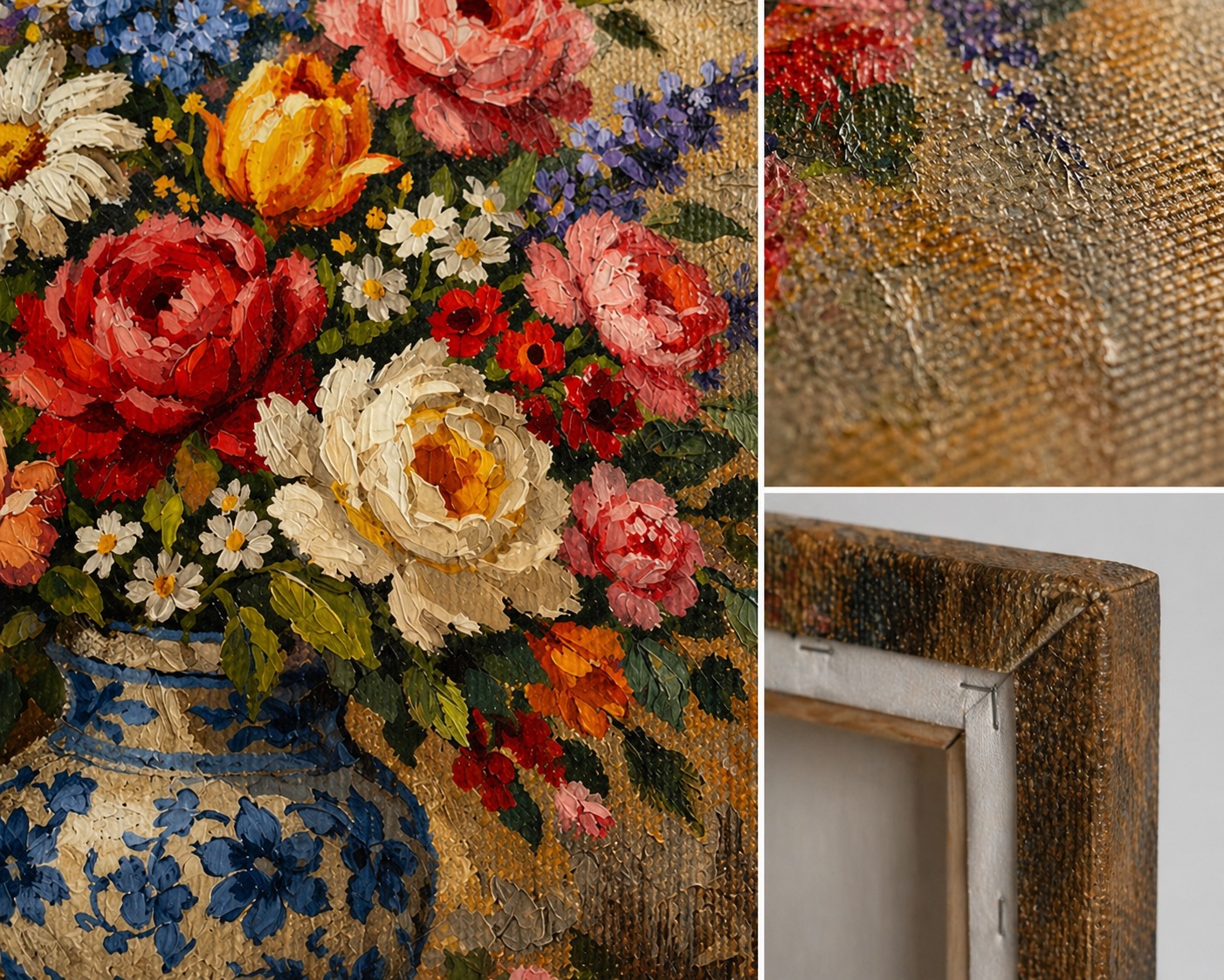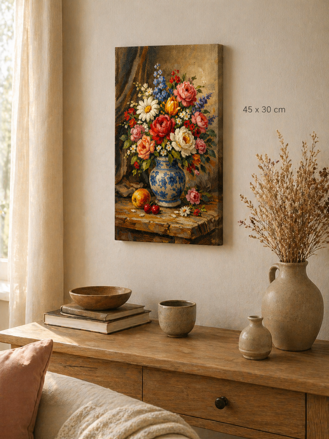 Obraz je možné zakoupit bez rámu (moderní vzhled plátna) nebo s dřevěným rámem.